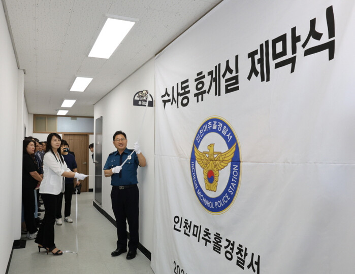 | 미추홀경찰서 수사동 내에 신설된 직원 휴게실 제막식 장면 (사진=미추홀경찰서) |