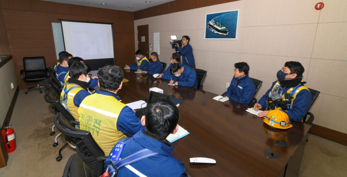 | ▲ 현대삼호重, 중대재해 예방 사외협력사 안전진단 실시을 위한 회의를 개최하고 있다>(출처=현대삼호중공업) |
