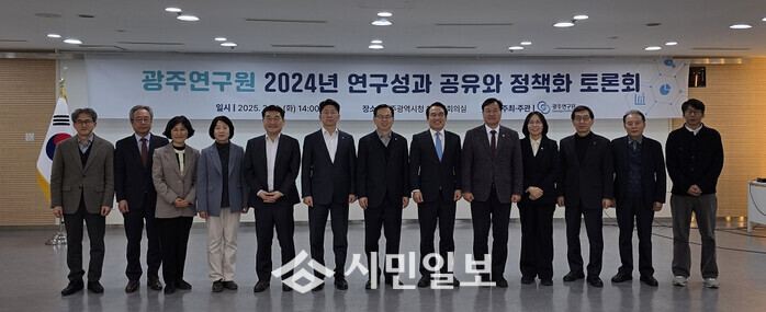 11일 광주시청 중회의실에서 광주시청 주요 부서, 광주시 의회, 전문가 등과 함께 한 ‘연구성과 공유와 정책화 토론회’에서는 미래 의제 발굴, 주요 시정 현안 대응 등 다양한 영역에서 이룬 연구성과가 시정 발전과 시민의 삶의 질 개선에 유용하게 활용되기 위해서는 보다 체계적인 후속연구가 필요하다는 의견이 제시됐다.