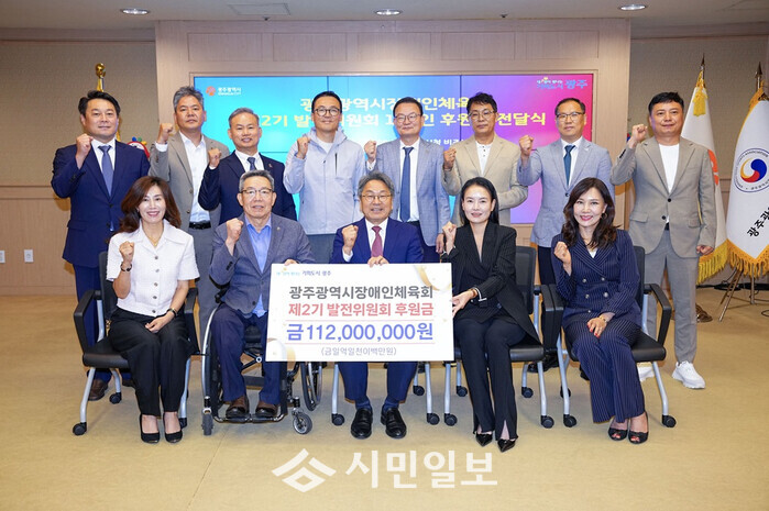 광주시장애인체육회 제2기 발전위원회는 장애인체육의 경쟁력 강화를 위해 구성된 민간 후원 조직으로, 지역 기업과 일반 후원인 100명이 자발적으로 100만 원 씩 후원금을 모아 총 1억1200만 원을 조성, 이날 후원금을 전달했다.