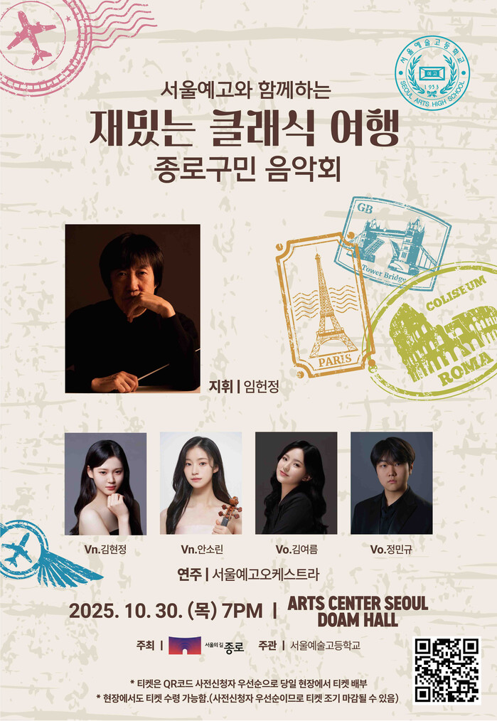 30일 열리는 ‘서울예고와 함께하는 재밌는 클래식 여행, 종로 구민음악회’는 종로구가 주최하고 서울예술고등학교가 주관하며, 젊고 생동감 있는 클래식 무대를 선보일 계획이다.
