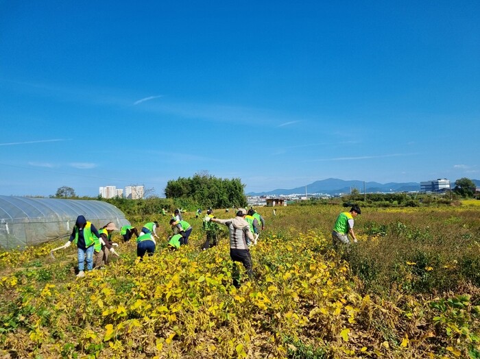 이날 교육생들은 3개 팀으로 나눠 고추대 제거, 콩밭 풀베기 작업에 참여하는 등 일손이 부족한 농가에 힘을 보탰다. 또 봉사활동 현장에서 지역농민의 고충을 헤아리는 소통의 시간을 갖고, 고구마 등 지역농산물 사주기 운동을 펼쳤다.