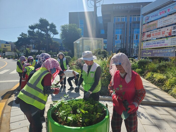이번 화단 조성사업은 농업기술센터가 꽃육묘장에서 자체 생산한 메리골드, 페튜니아 등 초화류를 활용해 한국마스터가드너 광주지회와 함께 추진했다.