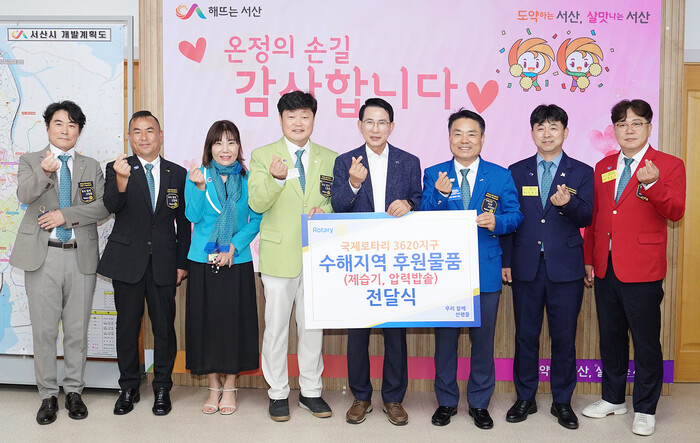 [서산=최복규 기자] 충남 서산시는 11일 국제로타리3620지구가 집중호우로 어려움을 겪는 주민을 위해 900만원 상당의 구호물품을 전달했다고 밝혔다.