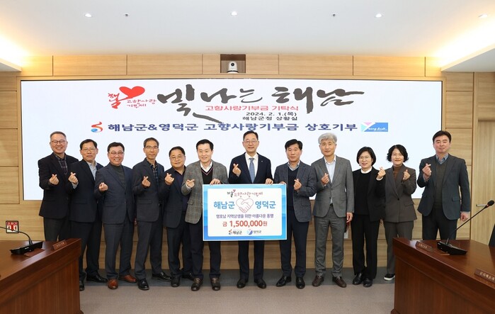 올해 첫 상호기부에는 명현관 군수 50만 원, 간부공무원 10명이 100만 원 기부를 비롯해 기획실 소속 직원 21명이 210만 원을 영덕군 고향사랑기부제에 기부했으며, 영덕군에서도 이에 화답해 360만 원을 해남군에 기부했다.