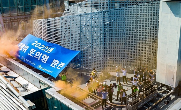 또 위기대응 절차에 따라 ▲비상 상황발생 단계 ▲비상상황 전파단계 ▲비상상황 초기 상황판단회의와 중앙주민보호 대책본부와 광주광역시주민보호대책본부를 운영하는 상황대응 단계로 구분해 실시됐다. 이처럼 토의형 민방위 훈련이 실시된 것은 광주가 첫 사례다.