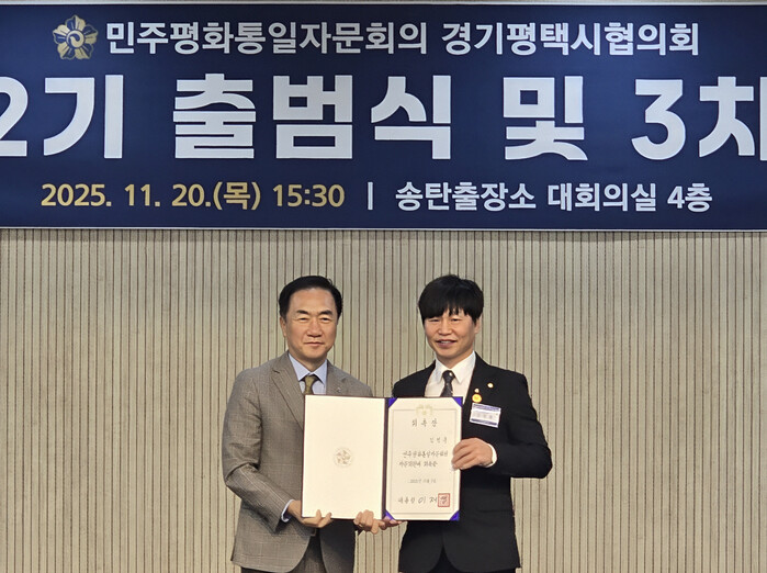 이날 출범식에서 정장선 평택시장은 이재명 대통령을 대신해 자문위원들에게 위촉장을 직접 수여하며 “평택의 미래와 한반도의 평화를 위한 민주평화통일자문회의의 역할이 그 어느 때보다 중요하다”고 강조했다. 최시영 신임 회장도 “책임 있는 통일 자문활동과 국민과의 격의 없는 소통을 통해 민주평통의 역할을 강화하겠다”고 밝혔다.