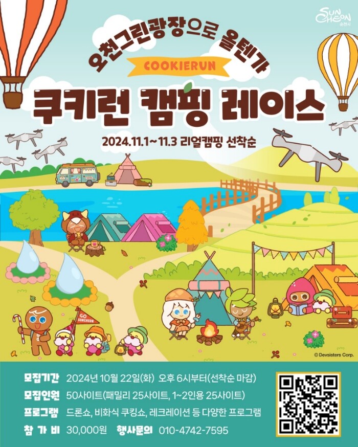 캠핑존 참여자에게는 '콘텐츠 페스티벌 in 순천'과 쿠키런이 콜라보 한 한정판 피크닉 매트, 노티드 도넛 교환권, 전투식량 등 캠핑키트가 제공된다.