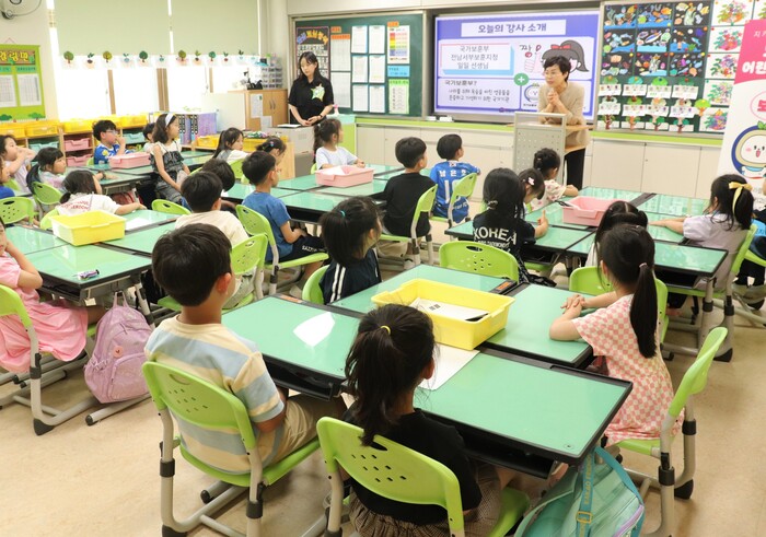 [목포=황승순 기자]국가보훈부 전남서부보훈지청(지청장 이향숙)은 11일, 호국보훈의 달을 맞아 목포석현초등학교 늘봄·돌봄교실 1학년 학생 30여 명을 대상으로 “오늘부터 나라지킴이가 되어 봄!” 일일 수업을 진행했다.