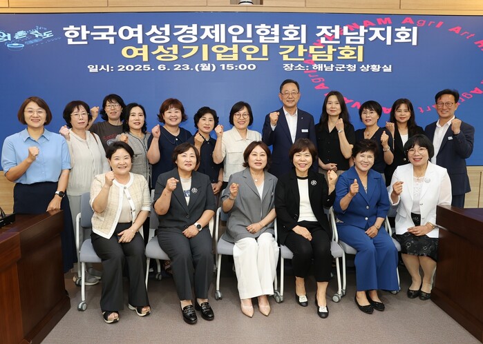 오옥자 지회장 등 전남지회 임원진과 해남군 회원 등 20여명이 참석한 이날 열린 간담회는 격의없는 분위기 속에서 여성기업인의 생생한 현장 이야기를 듣고 개선방안을 모색하는 시간으로 진행됐다.