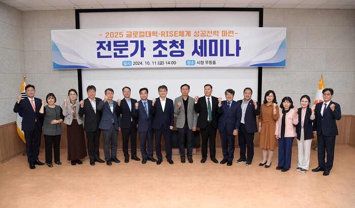 | ▲ 광주광역시, 11일 시청 무등홀에서 ‘2025년 글로컬대학 및 RISE체계 성공전략’ 주제 전문가 초청 세미나 개최 기념촬영 / 광주광역시 제공 |