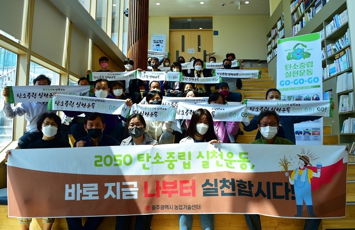 | ▲ 광주광역시 농업기술센터, 빛고을농업대학 탄소중립 실천 운동 퍼포먼스 / 사진=광주광역시 제공 |