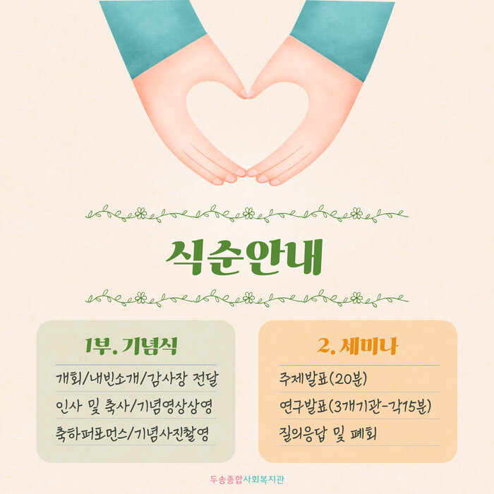 1부 기념식에서는 20년 이상 봉사자 등에 감사패 전달, 기념영상 상영, 축하 퍼포먼스 등이 진행된다. 특히, 그동안 지역과 함께해 온 성과를 기념하고 향후 복지관의 새로운 도약을 다짐하는 자리가 될 예정이다.