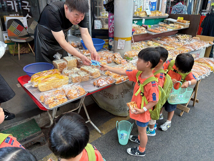 27일 행사에 참여한 아이들은 사전에 배부된 쿠폰으로 간식이나 생활용품 등을 직접 구매하며 경제 개념을 배우는 한편, 상인들과의 대화를 통해 전통시장의 따뜻한 정서를 경험했다.