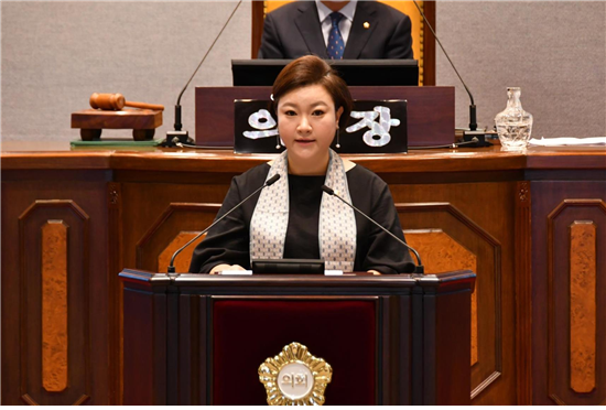 | ▲ 김현정 의원이 5분 자유발언을 하고 있는 모습.(사진제공=강남의회) |