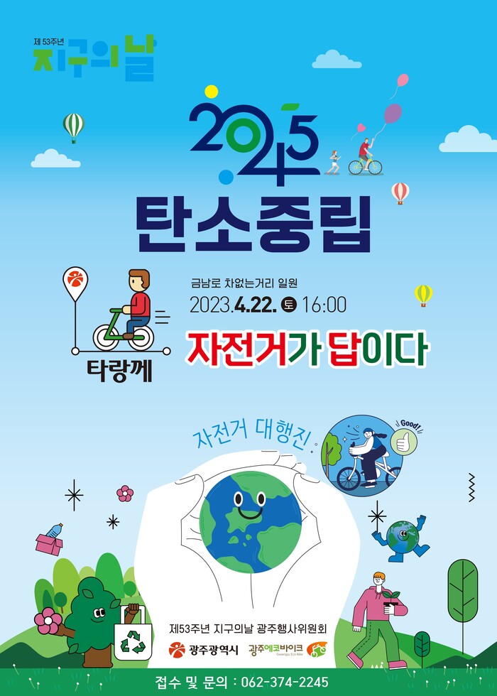 특히 행사 당일에 한해 광주시 공공자전거 ‘타랑께’를 무료로 이용할 수 있도록 해 친환경 녹색교통 수단인 자전거 타기에 관심을 유도할 계획이다.