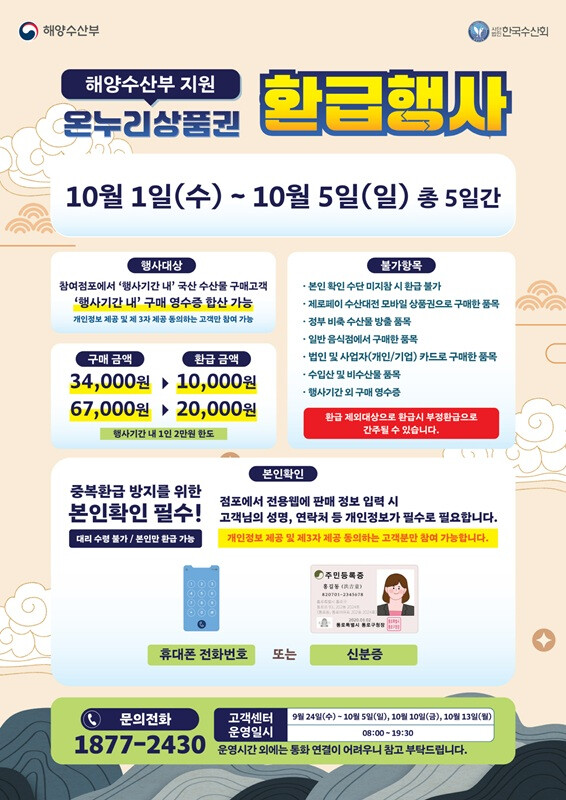 환급 기준은 구매금액 3만4000원 이상 구매하면 1만원, 6만7000원 이상 구매하면 2만원이다.
