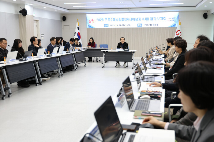 서울 구로구가 최근 최원석 부구청장을 비롯해 행사 추진부서 국ㆍ과장 등 30여명이 참여한 가운데 구청 창의홀에서 구로G페스티벌(아시아문화축제) 결과보고회를 개최했다. 사진은 최 부구청장이 회의를 주재하는 모습. (사진=구로구청 제공)