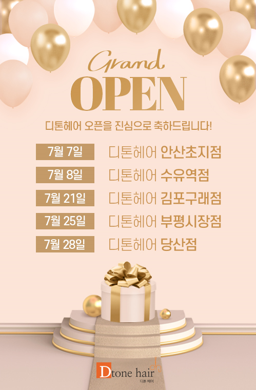 디톤헤어 안산초지점은 오는 7일 오픈하며, 수유역점은 8일, 김포구래점은 21일, 부평시장점은 25일, 당산점은 28일에 오픈할 예정이다.