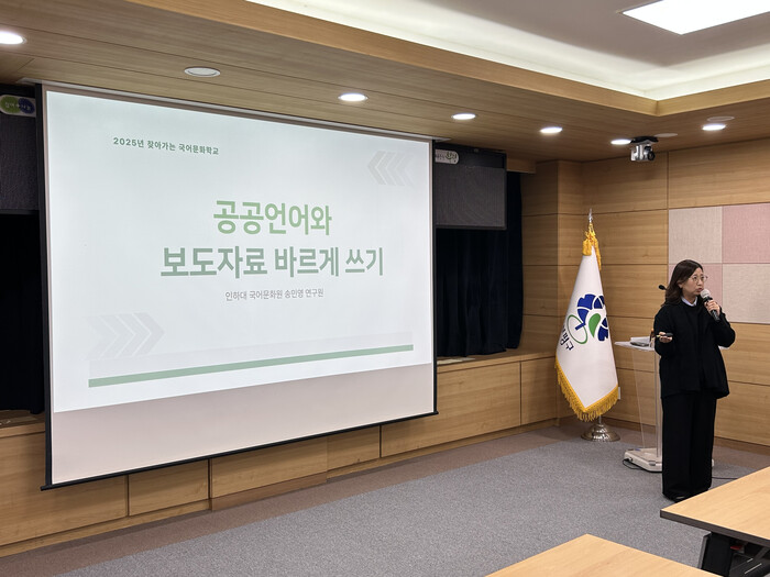 송민영 연구원은 공문서 및 보도자료 작성 시 ‘올바른 글쓰기’를 비롯해 어려운 행정 용어 및 외국어·한자어를 줄이고, 순우리말이나 알기 쉬운 표현으로 순화할 수 있도록 교육을 진행했다.