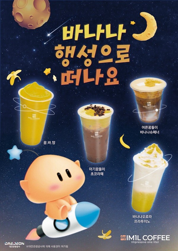 프랜차이즈 브랜드 아임일리터가 대전관광공사 마스코트 꿈돌이와 함께 바나나를 활용한 신메뉴 5종을 선보였다고 5일 밝혔다.