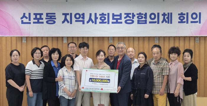 [인천=문찬식 기자] 인천 중구 신포동 지역사회보장협의체(공동위원장 김도윤, 김현기)는 추석을 맞이해 지난 17일 한국마사회 인천 중구지사와 인천사회복지공동모금회에서 취약계층 지원을 위한 1,000만 원의 후원금을 기탁했다고 밝혔다.