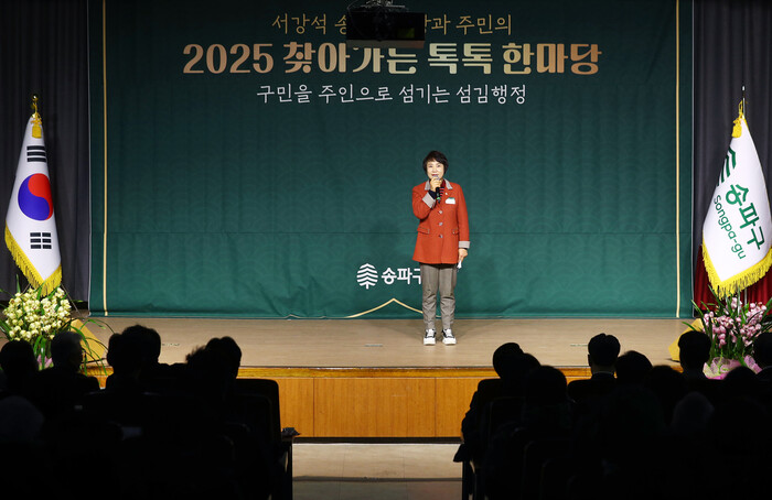 이혜숙 의장은 인사말을 통해 “삼전동 주민들의 이야기를 들을 수 있는 이런 귀한 자리가 마련되어 기쁘게 생각한다.”라며, “삼전동은 다가구·다세대 주택이 많고 1인 가구 비율도 높은 편이다. 삼전동을 살기 좋게 만들기 위한 그간의 노력들이 결실을 맺어 작년 11월 삼전근린공원 주차장이 완공되었고, 올해 6월에는 구민회관 리모델링 완성을 앞두고 있다. 더 살기 좋은 삼전동을 만들기 위해 앞으로도 송파구의회는 최선을 다하겠다.”라고 말했다.