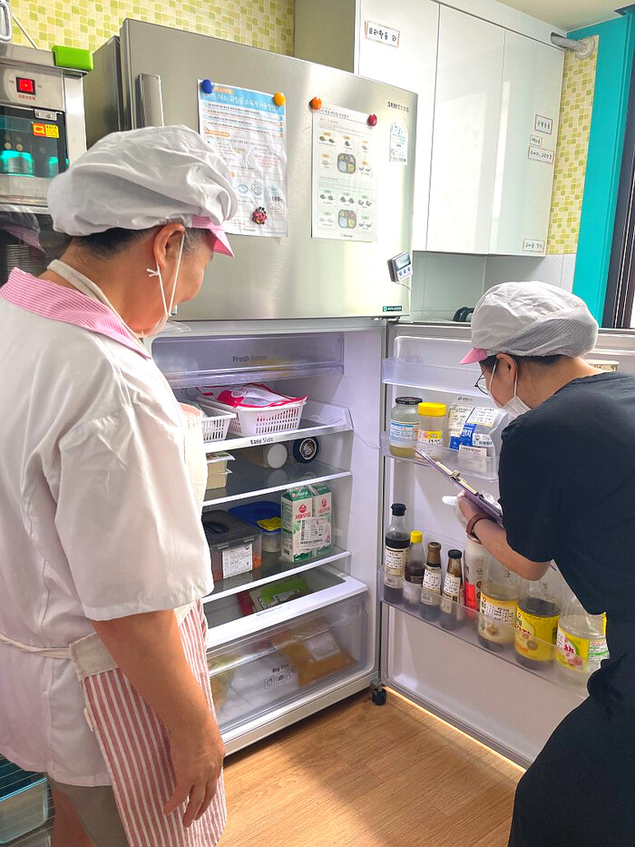 | ▲ 점검반원이 어린이집을 현장 방문해 식재료 등 위생 상태를 점검하는 모습. (사진=양천구청 제공) |