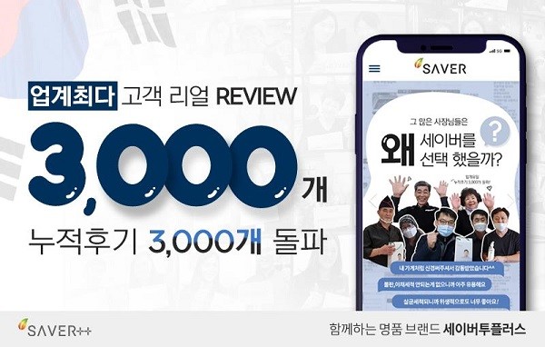 세이버투플러스는 지난해 9월 고객 실사용 후기 2,000건 돌파 이후 약 7개월 만에 업소용초음파식기세척기 업계 최다 후기 기록을 또 한 번 깨며 상업용 시장에서 국내 최고의 성과로 이목이 집중되고 있다. 세이버는 고객 만족을 최우선 가치로 두고 전국 투어 리얼 인터뷰를 진행하는 등 지속적인 고객 관리 서비스를 이어가고 있다.
