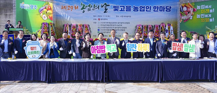 광주광역시(시장 강기정)는 농업인의 날(11월 11일)을 기념해 9일 시청 야외음악당에서 ‘제29회 농업인의 날-빛고을 농업인 한마당’을 개최했다.