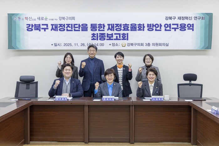 최미경 대표의원은 “지방재정은 지역 발전의 핵심 기반이지만 여전히 자치구 간 재정 격차가 해소되지 않고 있다”며 “이번 연구보고서가 강북구의 재정 운영 체계를 보다 전략적이고 지속가능한 구조로 전환하는 데 중요한 기초자료가 되길 바란다. 의회에서도 정책 반영과 제도 개선이 이루어질 수 있도록 적극 노력하겠다”고 밝혔다.