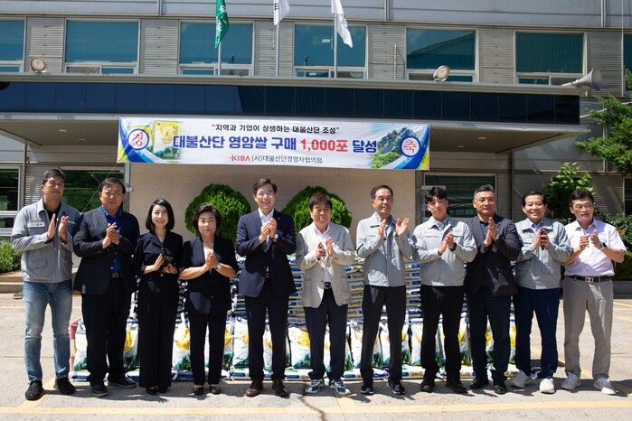기업 구내식당에서 지역 쌀 소비하기, 기업 행사 경품에 지역 쌀 이용하기 등 소비촉진 운동을 추진한 결과 영암쌀 1000포(20kg) 구매 실적을 달성해 지난 8월28일 대불산단내 기업 구내식당에서 기념식을 개최했다.