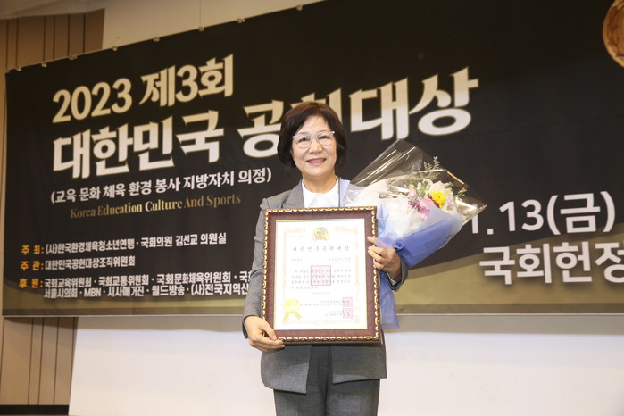 [시민일보 = 박준우 기자] 손숙희 서울 관악구의회 의원은 최근 국회헌정기념관에서 진행된 '2023년 제3회 대한민국 공헌대상'에서 의정부문 대상을 수상했다.