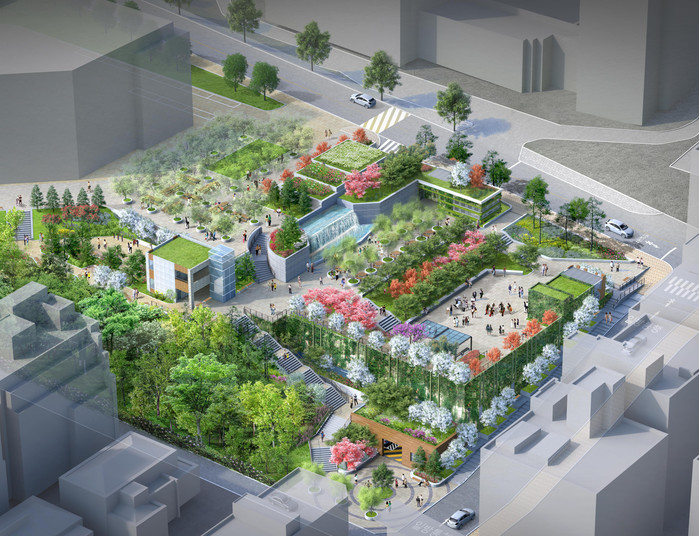 이에 구는 역삼문화공원 부지 일부(역삼동 635-1번지, 4534㎡)를 활용해 지하에 주차장을 조성하고 그 상부에 공원을 만들었다.
