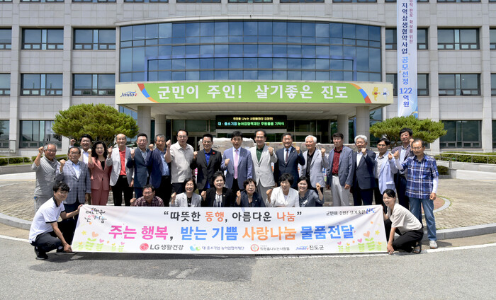 김희수 군수는 “진도군에 뜨거운 관심과 응원을 보내주신 LG생활건강, 대ㆍ중소기업ㆍ농어업협력재단, (사)희망을나누는사람들 관계자 분들에게 깊은 감사드린다”며 “소중한 후원품과 따뜻한 마음은 생활에 어려움을 겪는 농어업인 가정에 잘 전달하고 지역사회의 구성원으로 힘차게 살아갈 수 있도록 군에서도 다양한 지원을 아끼지 않겠다”고 말했다.