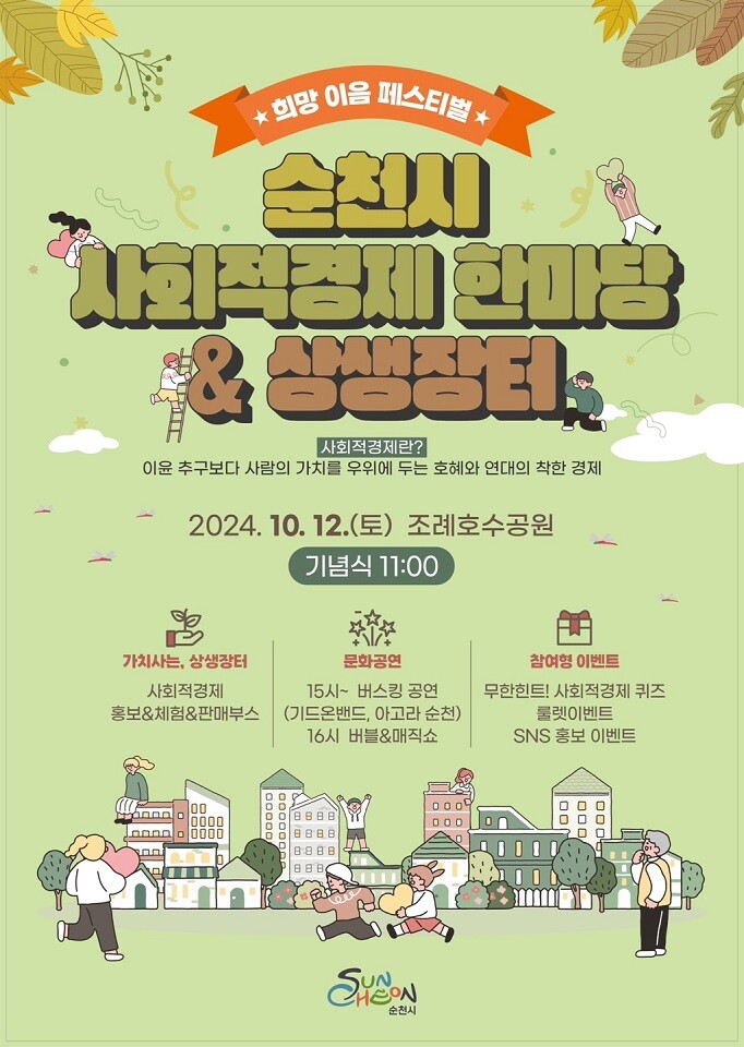올해는 순천시 우수 사회적경제기업 제품을 직접 만날 수 있는 사회적경제 상생장터를 진행해 시민들에게 가치소비를 실천할 수 있는 기회를 제공하고 20여개의 기업과 시민이 가까이에서 소통할 수 있는 자리를 마련했다.