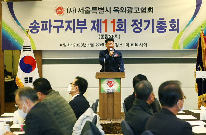 [시민일보 = 이대우 기자] 서울 송파구의회(의장 박경래)가 최근 더 베네치아 웨딩홀에서 열린 서울특별시 옥외광고협회 송파구지부 제11회 정기 총회에 참석했다.