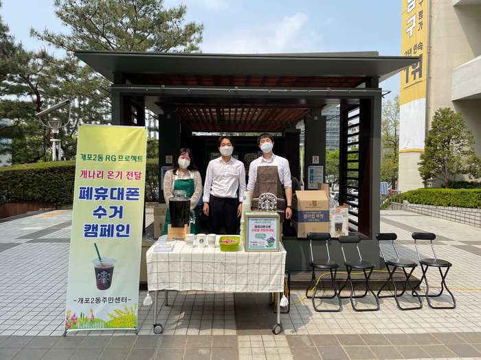 ‘개포2동 주민들이 나눠 쓰고 리사이클링해 이웃에게 온기를 전달한다’는 의미를 담은 ‘개나리 온기 전달 프로젝트’는 폐휴대전화를 수거한 뒤 재활용을 통해 얻은 수익금을 취약계층에 기부하는 사업이다.