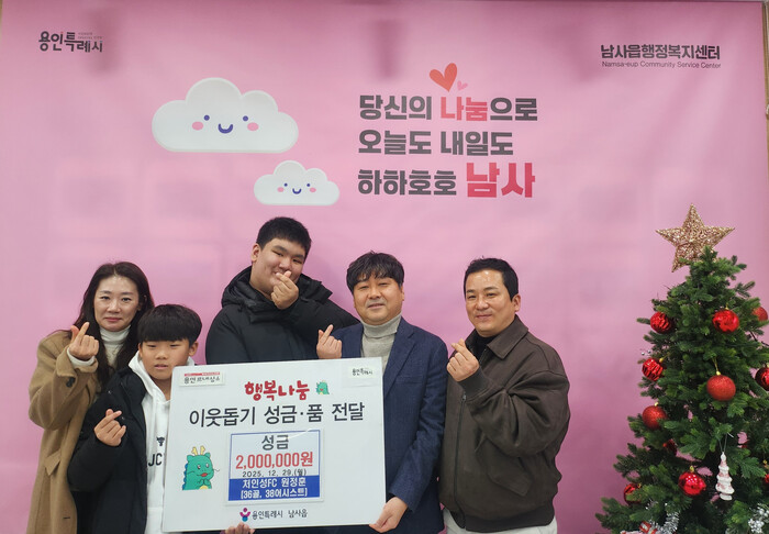 축구동호회인 ‘처인성FC’와 회원 원정훈씨 가족은 지난해 12월 29일 어려운 이웃을 위해 성금 200만 원을 남사읍에 기탁했다.
