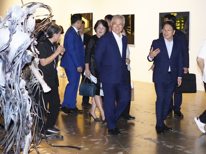 이날 광주비엔날레 관람은 문재인 전 대통령과 부인 김정숙 여사, 강기정 시장, 박양우 광주비엔날레 대표, 윤도한 GGN글로벌광주방송 대표, 노영민 전 청와대 비서실장 등이 함께 했다.