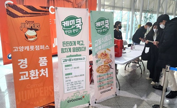 교동식품은 한 팩에 다양한 음식이 들어있는 간편식인 '케미쿡'의 막치닭(막국수, 치즈닭갈비) 150세트를 현장에서 제공하는 것을 포함하여 고양 캐롯 점퍼스에 총 2억 8천만 원 상당의 케미쿡 무료 교환 쿠폰을 후원했다.