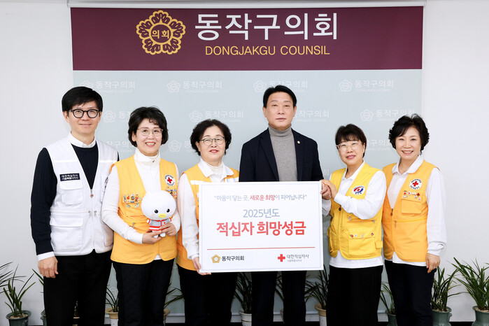 [시민일보 = 여영준 기자] 서울 동작구의회(의장 정재천)가 22일 의장실에서 대한적십자사 서울지사에 2025년도 적십자 특별회비를 전달하며 나눔을 실천했다.