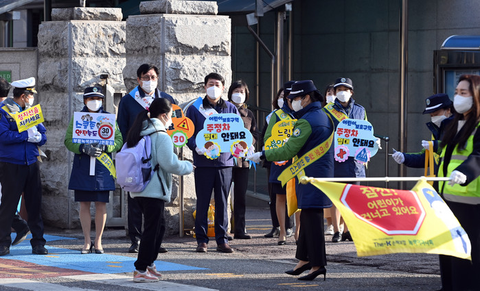 참가자들은 운전자를 대상으로 스쿨존 내 주정차 전면금지, '안전속도 5030' 준수를 홍보하고, 등굣길 학생들을 대상으로는 보행 중 휴대전화 사용 금지, 횡단보도에서 뛰지 않고 천천히 건너기 등 어린이 교통안전 수칙 교육과 홍보를 했다.
