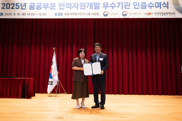 관악구시설관리공단(이사장 천범룡)이 지난 16일 교육부와 인사혁신처가 주최하고 한국직업능력연구원이 주관하는 '2025년 공공부문 인적자원개발 우수기관(Best-HRD) 인증제'에서 우수기관으로 선정됐다.