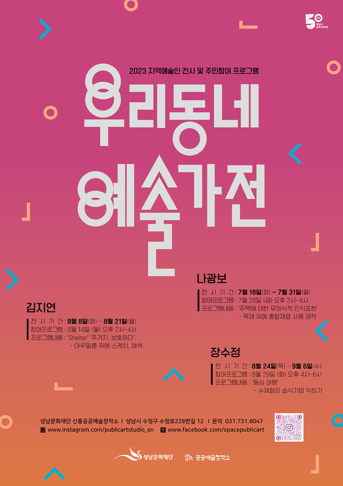 [성남=오왕석 기자] 성남문화재단이 운영하는 신흥공공예술창작소에서 지역예술가들과 주민들의 특별한 만남이 펼쳐진다.