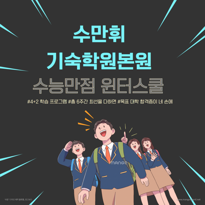수만휘기숙학원 관계자는 “이 시기에 공통적으로 개강하는 윈터스쿨과 수만휘기숙학원 ‘수능만점 윈터스쿨’의 차별점은 검증된 ‘수업과 자습의 완벽한 황금비율’을 꼽을 수 있다.”라며 “수업과 자습을 적절하게 병행하며 학습능력을 강화하고 자습을 통해 안정적인 최상위권에 안착할 수 있게끔 학습 습관을 만들어 수료 후에도 흔들림 없이 수험생활을 할 수 있도록 교육하는 것이 목표다.”라고 설명했다.