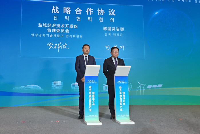 영암군 방문단은 염성시 국제컨벤션센터에서 열린 ‘한ㆍ중 무역투자 박람회 및 한ㆍ중산업단지 경제무역협력교류회’에 참석해 친환경 모빌리티와 첨단산업 분야의 협력 가능성을 모색하고, 해외투자 기업 유치 활동도 펼쳤다.