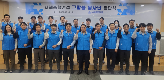 서해종합건설은 지난 18일 박정배 대표이사를 비롯한 임직원들이 참석한 가운데 ‘그랑블 봉사단’ 창단식을 가졌다.