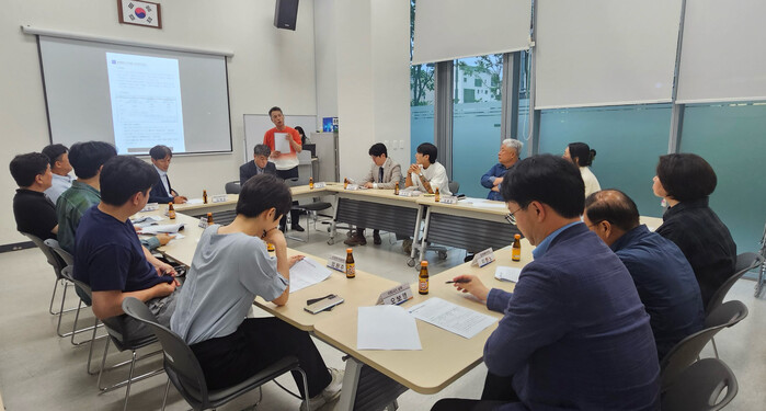 경기 과천시가 최근 갈현동 주민센터에서 ‘공영 버스주차장 조성을 위한 민관 협의체’ 제2차 회의를 열고, 지식정보타운 업무지구 인근 후보지에 대한 주민 의견을 수렴하는 자리를 가졌다. 사진은 제2차 회의가 진행되는 모습. (사진=과천시청 제공)
