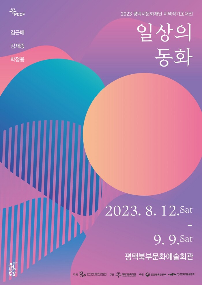 한편, 2023 평택시문화재단 지역작가초대전 <일상의 동화>는 「문예회관과 함께 하는 방방곡곡 문화공감」사업의 일환으로 사업비의 일부를 문예진흥기금으로 지원 받아 진행한다.